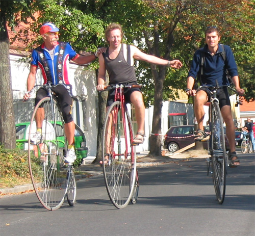 Bei der Eröffnung des Radweges 'Rund um den Bisamberg' waren wir natürlich auch dabei. Das besondere an dem Ausflug? Weltenbzummler Manfred (mit dem Hochrad auf allen Kontinenten dieses Planeten gefahren), Australien reisender Georg und 'mit dem Hochrad um die Welt Fahrer' in spe Joff auf einem Bild: