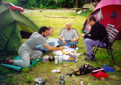 Schon an den ersten beiden Tagen in Brünn - ohne Rennen - konnten wir unsere überlegenheit zeigen: Bei der Organisation unseres gemütlichen Lagerlebens mit reichhaltigen Buffets.