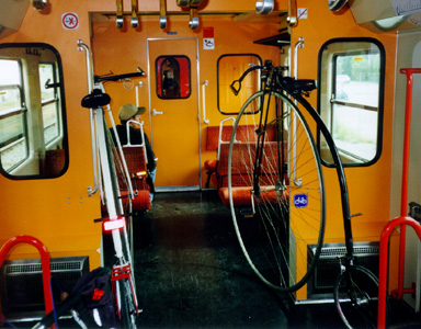 Ruhiger Ausklang eines netten Ausflugs: Zufrieden lehnen unsere Räder in der Schnellbahn zurück nach Wien.
