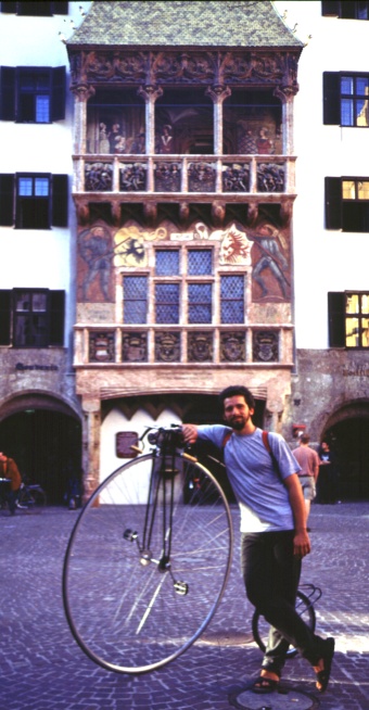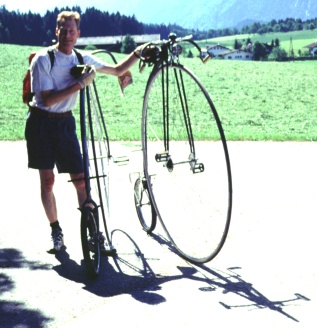 Ende Mai 1999 gab es die Gelegenheit zu einem Hochradausflug durch das untere Inntal. Ausgangspunkt war Innsbruck - wo mein 56" Hochrad einigermassen Aufsehen erregte.
