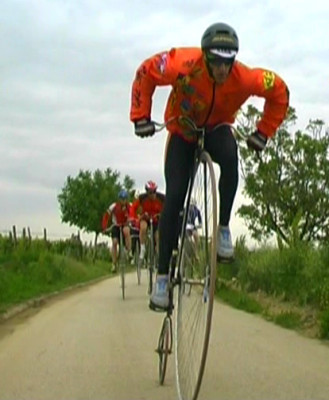 In der neun Mann starken Führungsgruppe kam es ständig zu Positionswechseln und Ausreißversuchen - wie hier von Josef Simovcak (Cz).