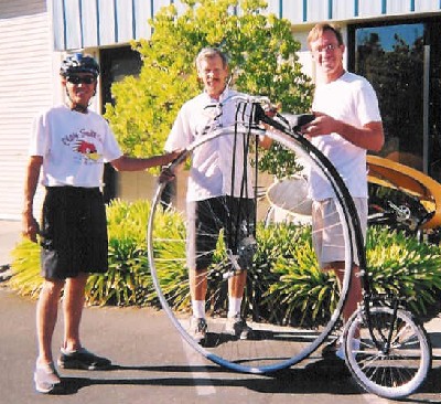 This is Mike and Steve with a third unknown bicyle-freak, who also liked our bike. Check out Steve's homepage to see that he is competent in bicycle-building.