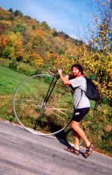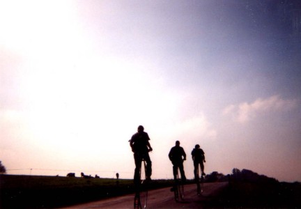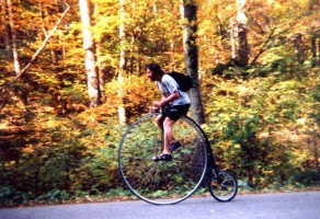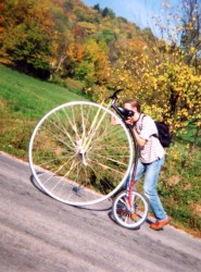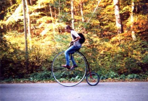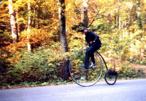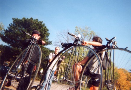 Aber bei der schönen Herbststimmung wollten alle einfach das Fahren genießen - auch unser Neuling Hans-Peter, der noch auf einem geborgten Hochrad mitfährt (das können auch andere ausborgen - e-mail genügt!).