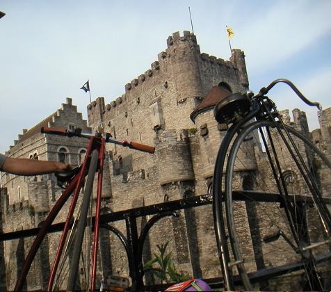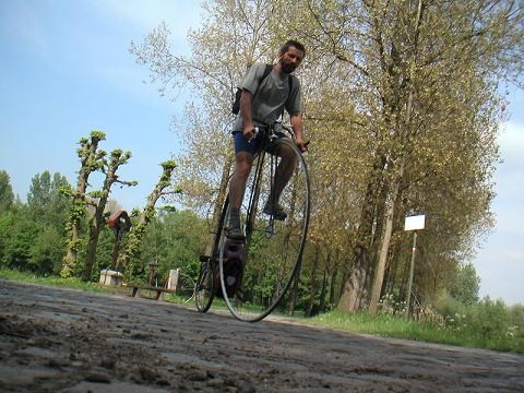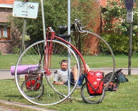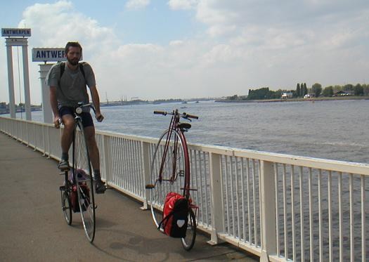 Solche Bedingungen motivieren natürlich auch zum Fahren und Antwerpen war rasch erreicht. Übrigens eine recht schöne Stadt, ein bißl touristisch halt, aber das ist man ja von zuhause gewöhnt. Im Unterschied zu Wien ist Antwerpen aber regelrecht ein Paradies für Radfahrer -- selbst auf den viel befahrenen Ein- und Ausfallstraßen gibts Radfahrstreifen, auf denen man sich sicher fühlt. Das Fahren gegen Einbahnen ist nicht nur selbstverständlich, sondern selbstverständlich auch erlaubt. Radfahrern gibt man Vorrang -- möglicherweise ist das aber in unserem Fall zum Teil der Respekt vor dem Hochrad?