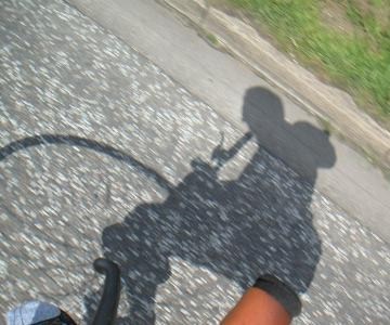 Der nächste Tag begann mit herrlichem Wetter. Leider fördert das auch den Übermut des Fotografen, aus voller Hochrad-Fahrt Lomo-mäßig über die Schulter zu knipsen -- das Resultat sieht dann so aus: