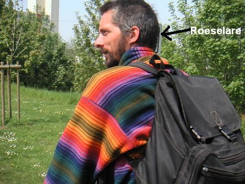 Kurz nach Mittag passieren wir die Ortstafel von Roeselare. Auf dem Bild ist das leider nur mit viel Fantasie zu erkennen, weil einem die Hochradfahrer immer ins Bild fahren ...