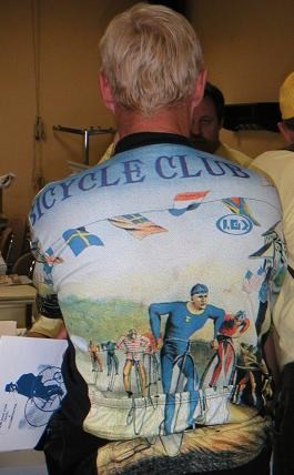 Bald kommen Hochradfahrer aus aller Herren Länder. Wie wir auch mit standesgemäßem Outfit: