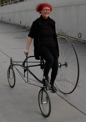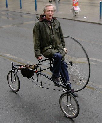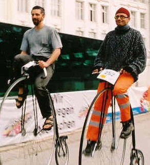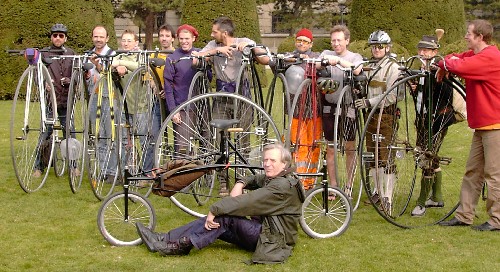 Nun ja - auch Franz ist eigentlich ein Hochradfahrer. Aber bei dieser Gelgegenheit hat er sein neues Rotary Tricycle ausgeführt. Und auch prompt den Preis für das originellste Fahrrad gewonnen. Wen wunderts?