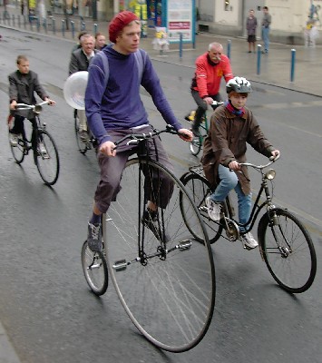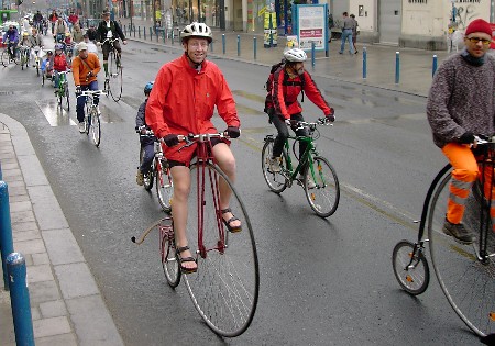 Von dort ging es dann über die gesperrte Mariahilferstraße Richtung Technisches Museum. Und alles voller Radfahrer - und soviele Hochradfahrer. Es war wirklich beeindruckend und - trotz des leidigen Wetters - schön.