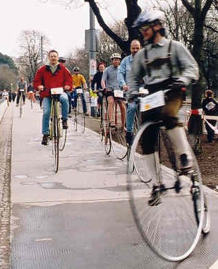 Auch auf diesem Bild sind zwei Hochradfahrer - wer findet sie?