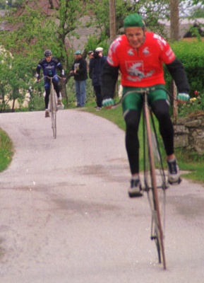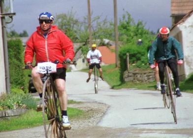 ... während die schwächeren Fahrer (mit Holzrad) bereits überrundet werden!