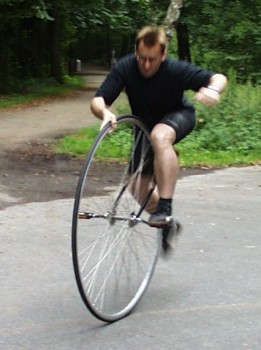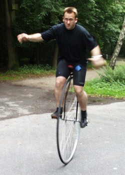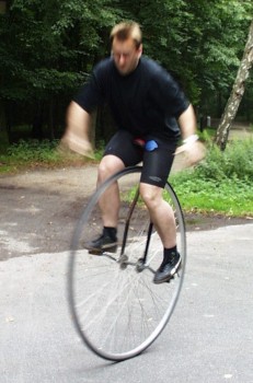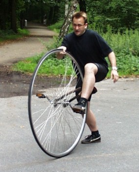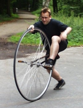 Man muß es ganz ehrlich sagen - bisher waren hier in Wien alle eher skeptisch, was den freien Aufstieg auf so ein Hochrad-Vorderrad betrifft.