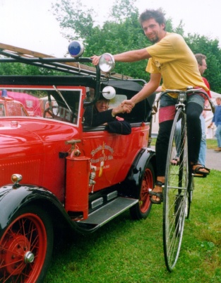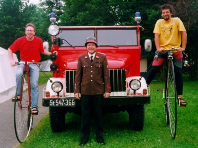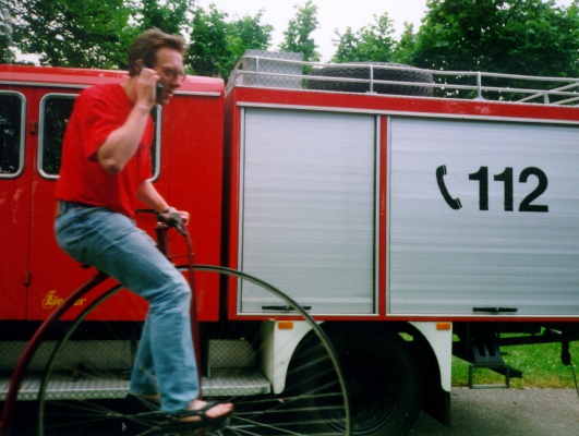 Natürlich ist es im ureigensten Interesse jedes Hochradfahrers, gute Kontakte mit der örtlichen Feuerwehr zu pflegen und sich für jede Rettung herzlich zu bedanken.