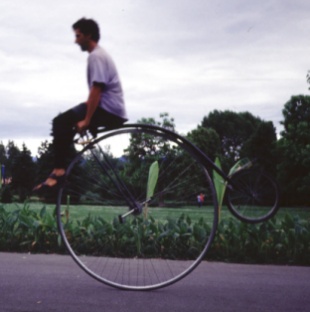 Man ruft die Feuerwehr! Früher haben laut um Hilfe schreiende Hochradfahrer das Stadtbild jeder Metropole geprägt - heute erledigt der moderne Hochradfahrer dies dezent mit dem Handy.