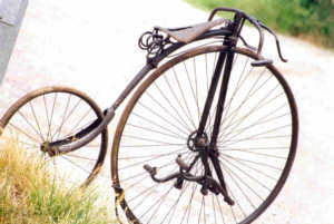 Das, was wir heute unter dem Begriff Hochrad verstehen (also Fahrradmonstrositäten, deren überdimensional hohes Vorderrad einen Durchmesser von 54“, also von 137 cm oder auch mehr aufweisen) hieß früher ganz anders: schlicht und phantasielos Bicycle, Zweirad. Räder, die wir heute als „Niederrad“ kennen, gab es damals ja noch nicht. Geändert hat sich das 1878, genau am 25. Jänner. An diesem Tag hat der Brite John Beale ein Patent angemeldet für ein Fahrrad, dessen Vorderrad nur 42 englische Zoll hoch war, und das nicht mittels Pedalen, sondern über Trethebel angetrieben wurde. Er nannte es „Facile“ (leicht) und fand mit dem Londoner Unternehmen Ellis & Co. auch einen Hersteller.Der Sinn dieser Bauweise lag in der subjektiven Sicherheit, denn mit Hochrädern war man bei einem Sturz extremen Verletzungsrisiken ausgesetzt, nicht selten endete so ein „Header“ mit dem Tod des Velocipedisten. Auch beim Facile konnte man natürlich stürzen, aber man fiel halt nicht annähernd so tief. Von nun an gab es eine namentliche Unterscheidung, die neue Art von Rad hieß jetzt „Safety – Bicycle“, das normale Hochrad wurde zum „Ordinary – Bicycle“ herabgewürdigt, also zum „gewöhnlichen Fahrrad“.