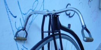 4: Der minimalististische Lenker ist einfach schnurgerade! Tatsächlich findet man solche Lenker auch an einem großen Teil der historischen Konstruktionen. In diesem Fall wirkt er dennoch durch die ledernen Lenkergriffe nicht klobig.