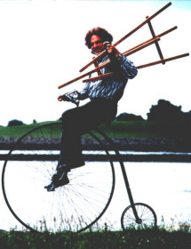"Jens": Bild bei der Motivsuche mit Staffelei auf dem Hochrad. So war es auch in einem SAT1-Bericht zu sehen. Ich möchte in Brunsbüttel / Norddeutschland im rahmen der Wattolümpiade www.wattoluempia.de die erste Norddeutsche Hochrad-meisterschaft ausrichten. Wer würde sich beteiligen ? |