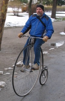 "Der Tischler": hat seinem Eigenbau-Hochrad noch schöne Holzgriffe hinzugefügt - und wird hoffentlich noch viel Spaß damit haben. |