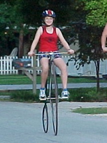 "BikinGail": Hier in der Liste um zu beweisen, daß auch Frauen - selbst in Texas - Hochrad fahren. |